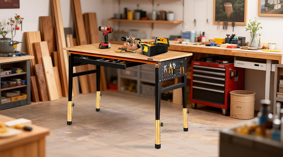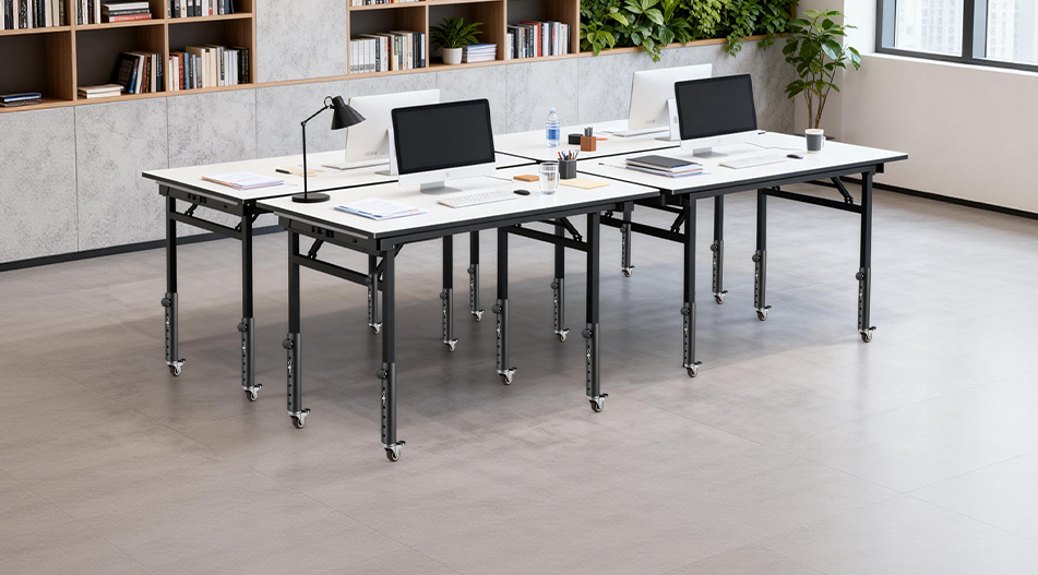 VinBee 4 Pack Adjustable Table Leg Extenders with Wheels,6-Level 10.8 inch Metal Furniture Risers for Folding Tables and Desks,Height Extension Legs for Home Office